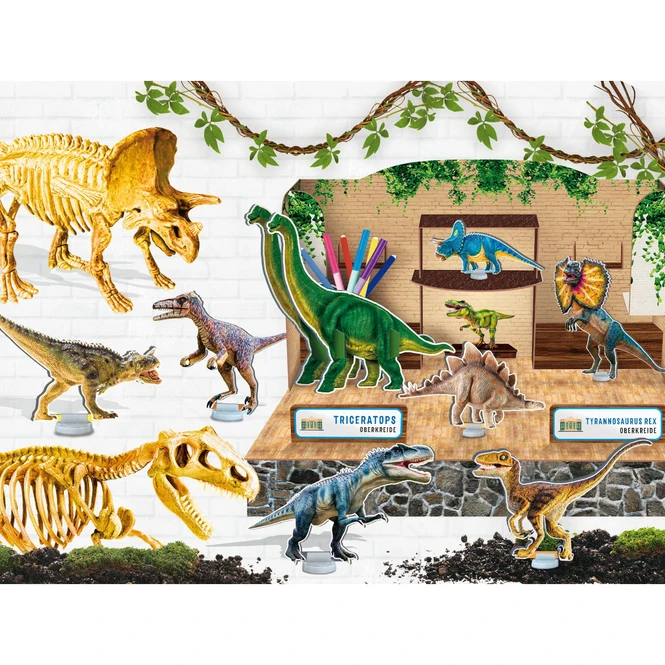 Mit diesem fantastischen Labor kannst du ein unglaubliches 3D-Museum bauen, in dem du alle deine Dinosaurier und die Skelette des wilden T-Rex und des Triceratops ausstellen kannst.