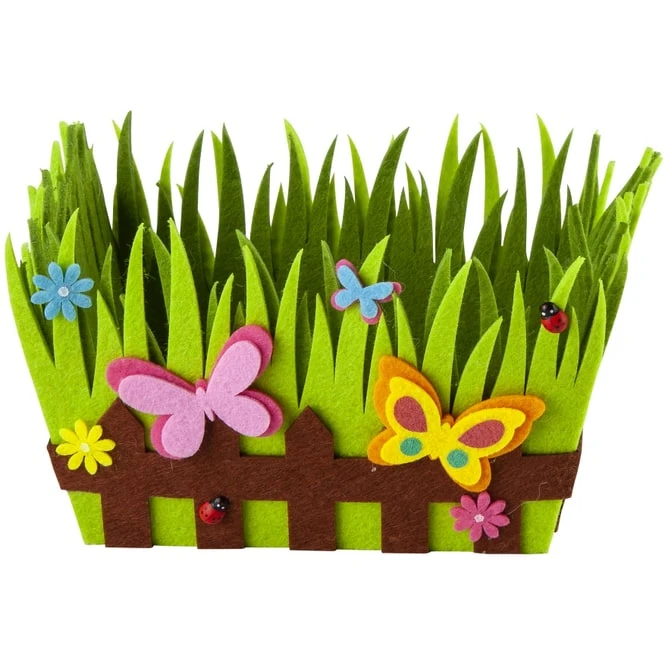 Bunte Eier und leckere Süßigkeiten sind in der österlichen Zeit einfach unerlässlich und dürfen weder bei Jung noch Alt fehlen. Denn prall gefüllter Nester bringen uns in Sekundenschnelle zum Strahlen, weshalb auch Erwachsene großen Spaß daran haben, welche zu suchen, um sich anschließen über den köstlichen Inhalt herzumachen. Damit die Leckereien fortan besonders gut zur Geltung kommen, ist das niedliche Osterkörbchen das optimale Zubehör. Es besteht aus liebevoll gestaltetem Filz, misst 20 x 16 x 12,5 cm und ist vor allem dank der liebevollen Gestaltung ein fröhlicher Osterbote. Somit eignet es sich nicht nur hervorragend, um die Ostereier sicher aufzubewahren, sondern überdies auch, um die heimischen vier Wände im Nu in ein heiteres Frühlingsambiente zu tauchen. Also lassen Sie Ihrer Fantasie freien Lauf und schmücken Sie munter drauflos!